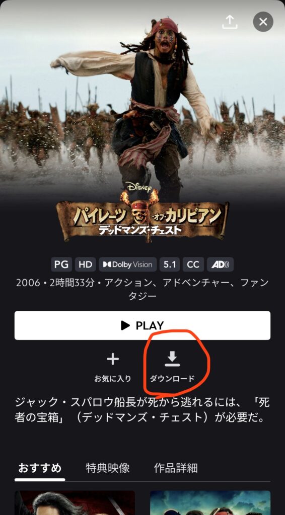 実はDisney+には、あらかじめ作品を保存しておくことで、通信なしで再生できるダウンロード機能があります。