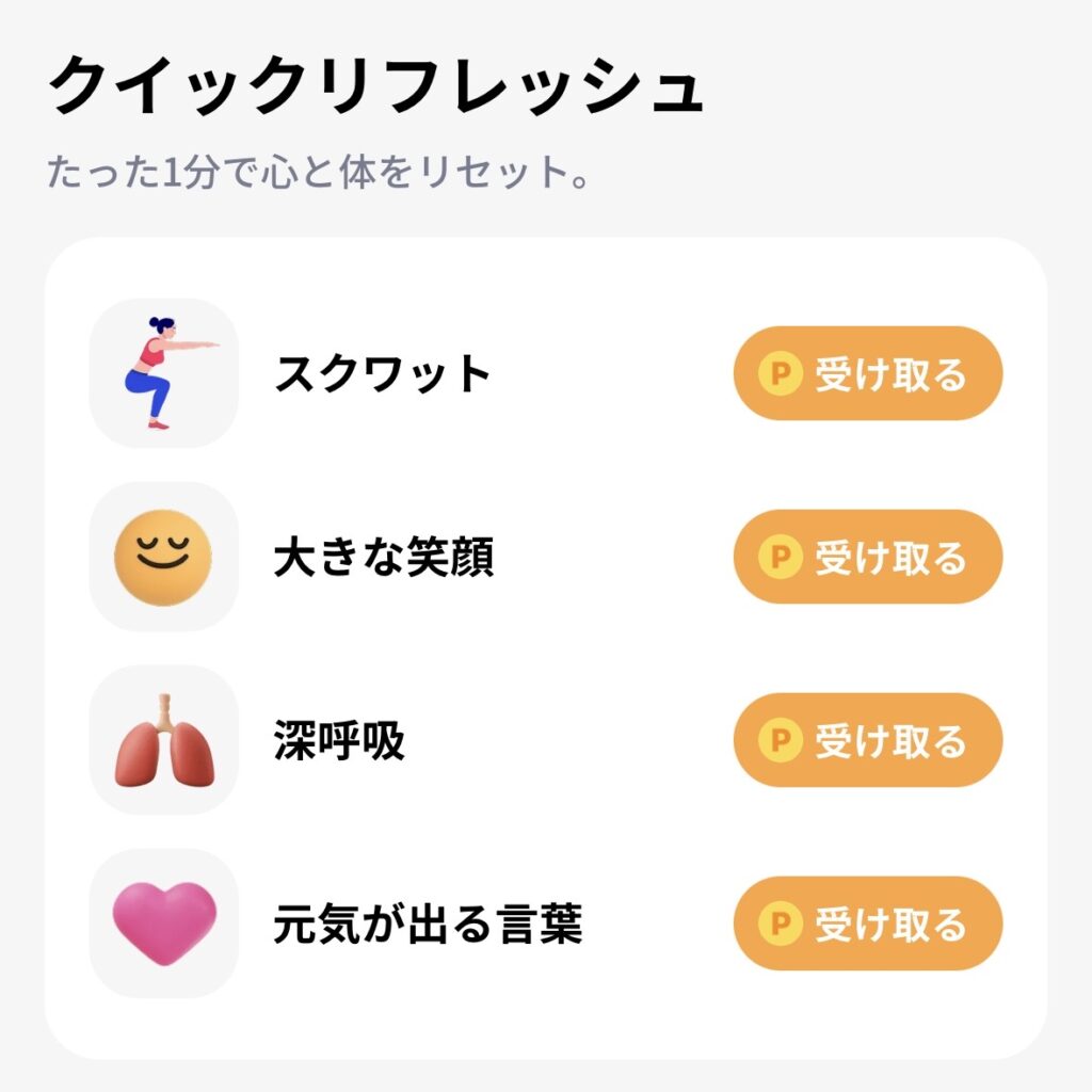 ちなみに、私は利用しませんでしたが、健康に関することをしてもポイントがもらえます。